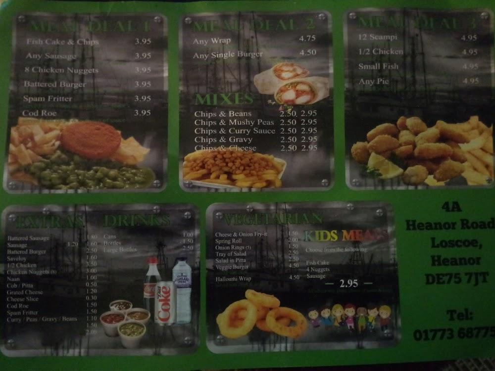 The Chip Shop resides in the heart of Loscoe, making it easily accessible for locals and visitors alike. Located on Heanor Road, this establishment has become a beloved hub for hearty, comforting meals with a casual atmosphere. It caters wonderfully to families, with a dedicated kids' menu, making it a go-to place for all ages. The accessibility features, such as wheelchair-friendly entrances and seating, ensure everyone can enjoy a meal here without hassle. Parking is plentiful, with both free street options and a parking lot available, making it easy to drop in for your favorite dish. The restaurant operates daily, providing a consistent option for lunch or dinner any day of the week, which is especially popular during peak hours like Friday evenings. If you’re a fan of classic British takeout, The Chip Shop is a delightful spot to satisfy those cravings.